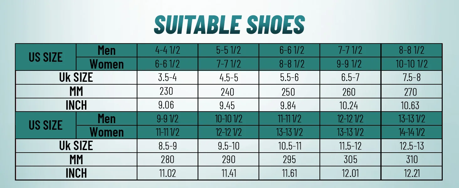 Please choose the right size according to the insole length, corresponding to the size chart.