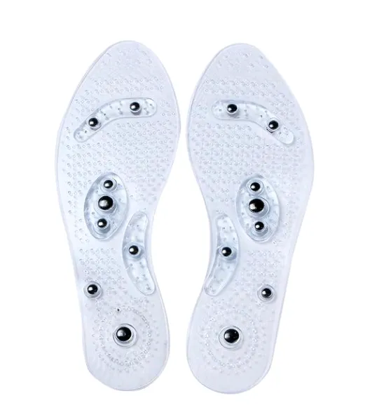 diseñada para mejorar la circulación, reducir el dolor de pies y promover el bienestar general. Utilizando puntos de masaje de acupresión, terapia magnética y soporte ergonómico para el arco del pie, estas plantillas proporcionan un efecto relajante en cada paso. Perfectas para atletas, oficinistas, personas mayores y cualquier persona que sufra molestias en los pies, estas innovadoras plantillas ayudan a aliviar la fascitis plantar, el dolor de talón y a mejorar la postura. Ya sea que esté de pie todo el día, buscando amortiguación adicional o beneficios de la reflexología, estas plantillas de masaje ofrecen alivio natural del dolor y soporte. ✔ Terapia magnética y estimulación de puntos de presión: Mejora el flujo de energía y alivia la fatiga del pie.