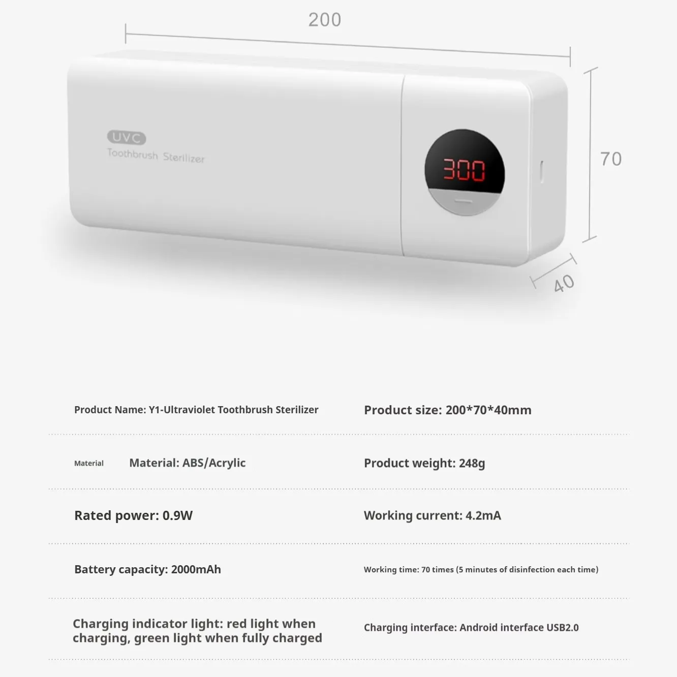 UV Sterilization Technology: Effectively eliminates 99.9% of bacteria, viruses, and germs from your toothbrush to maintain a