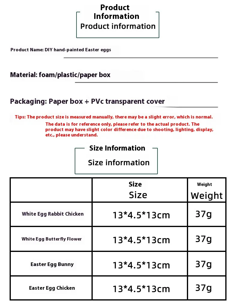 Size: R1-40 egg Pansy style, R1-39 egg rabbit chicken style, R1-37 egg Rabbit Rabbit style, R1-38 egg chicken style