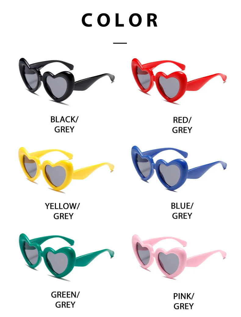 These plastic heart sunglasses are both stylish and practical, offering durability and comfort for all-day wear.