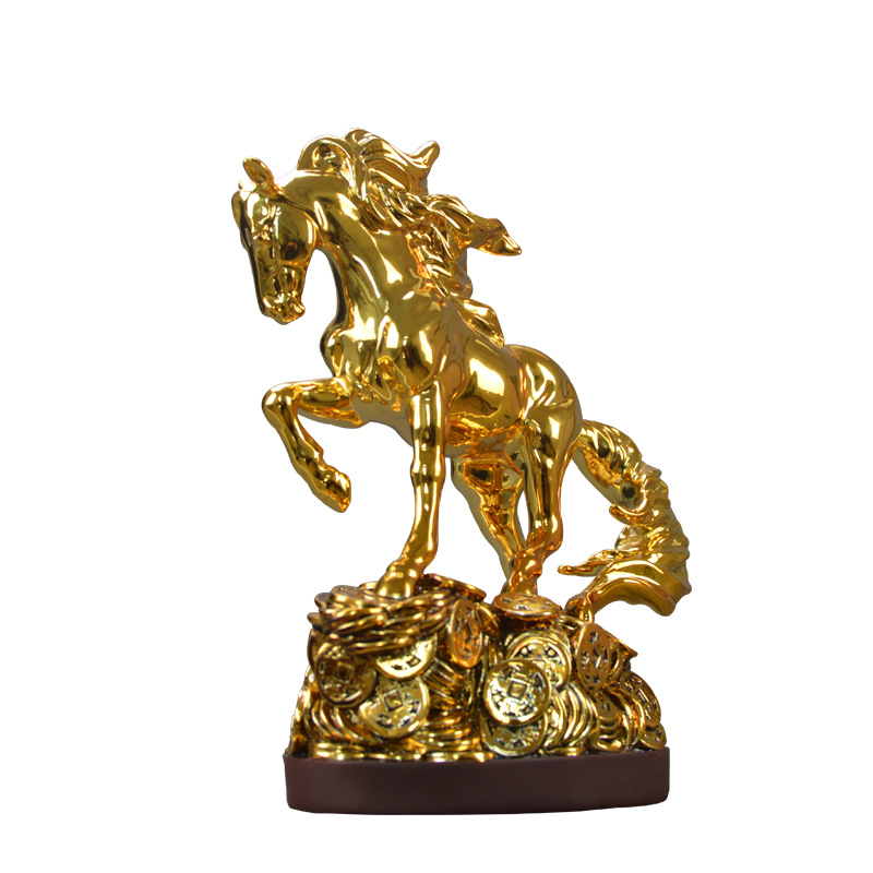 The plating on the horse ornament is a key feature that enhances its visual appeal. The metallic sheen adds a layer of sophistication and luxury, making the horse figure shine and stand out in any room. Whether the plating is gold, silver, or another metallic finish, it creates an aura of elegance that complements both modern and classic décor. The plated finish highlights the curves and features of the horse, adding depth and dimension to the overall sculpture.