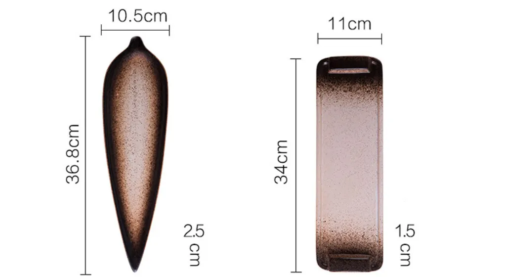 - El plato de cerámica de forma irregular suele medir alrededor de 9 a 10 pulgadas de diámetro, perfecto para platos principales o para compartir.