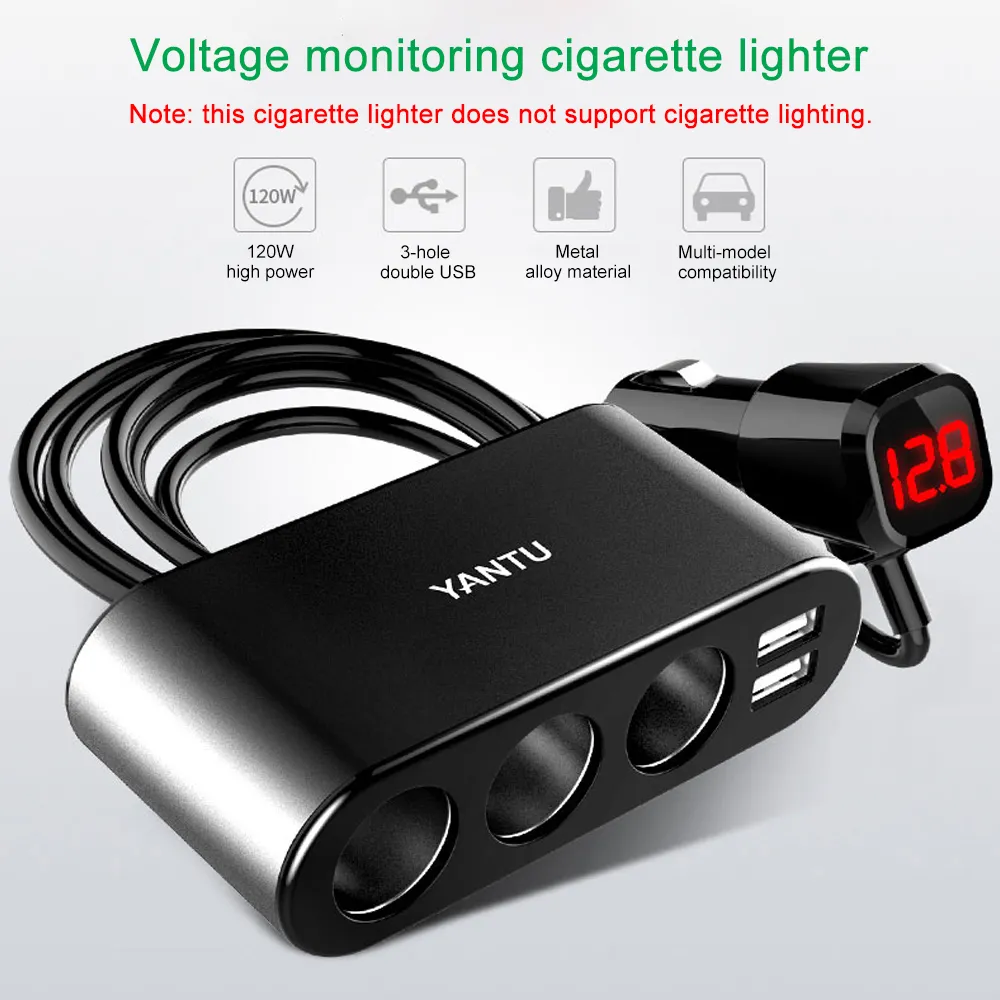 A: [Voltage monitoring + metal car charger] 3 holes 2USB extension cable black,