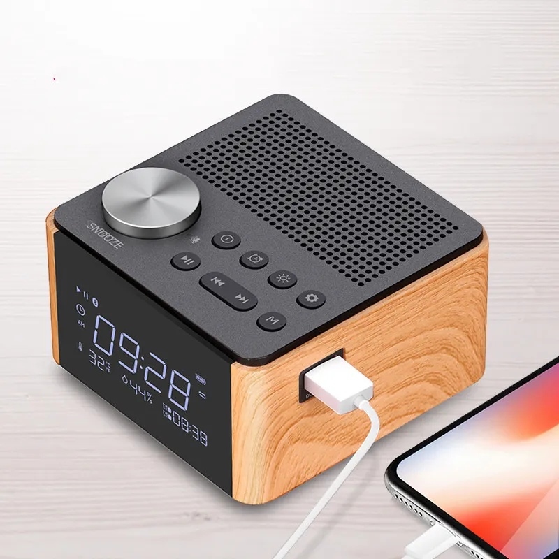 Plug-in Bluetooth Home Hotel Bedside Bedroom Alarm Clock Subwoofer Mini Speaker