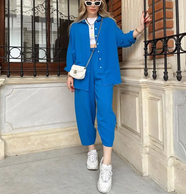 This loungewear set is versatile enough to be worn both indoors and outdoors. While it’s perfect for lounging around the house, it can also be styled for casual outings. Pair the set with sneakers or sandals for a laid-back, casual look, or add a denim jacket and accessories for a more polished vibe when meeting friends. Whether you’re running errands, enjoying a coffee date, or simply relaxing at home, this set is the perfect combination of comfort and style.
