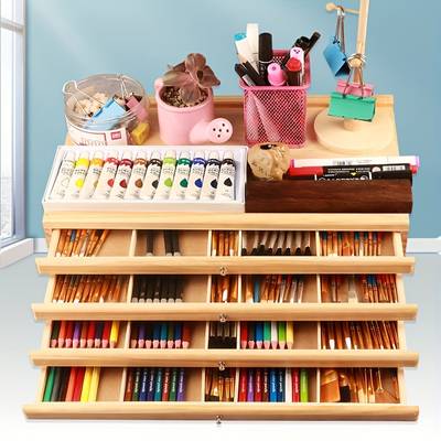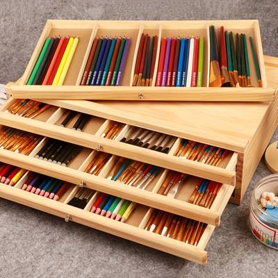 Multiple Compartments and Drawers: Includes designated spaces for brushes, pencils, pastels, markers, and pens, making it