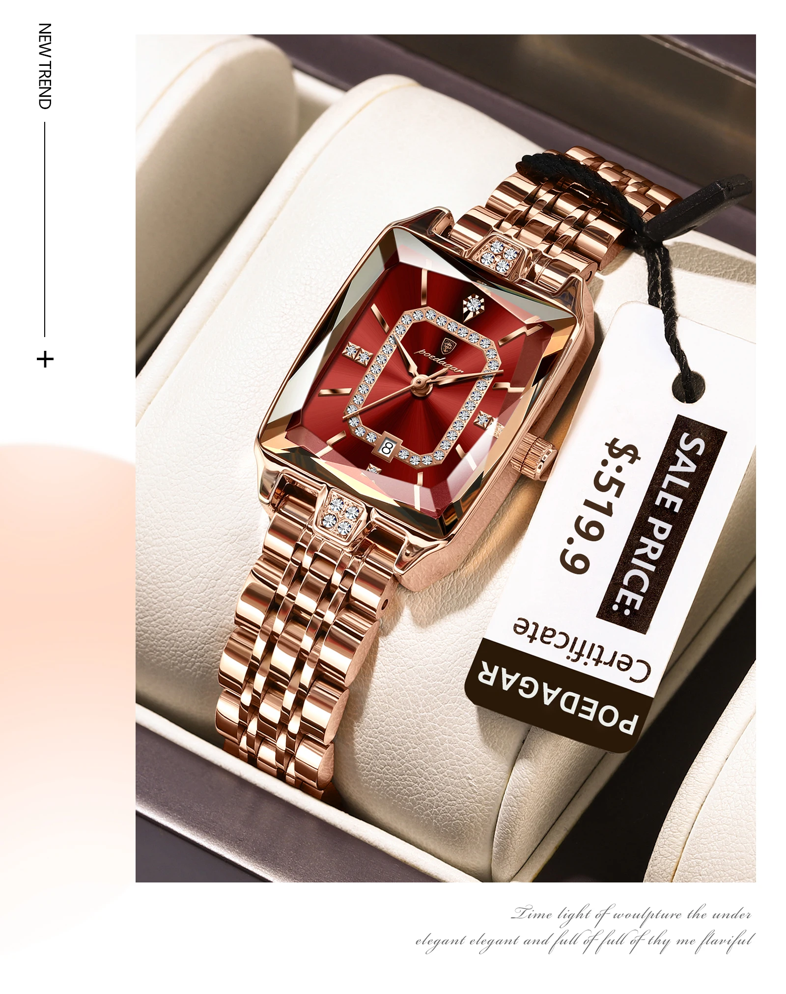 POEDAGAR Top Elegant Women Wristwatch Waterproof Date Ladies Watch Stainless Steel Rectangle Quartz Women's Watches Female Reloj