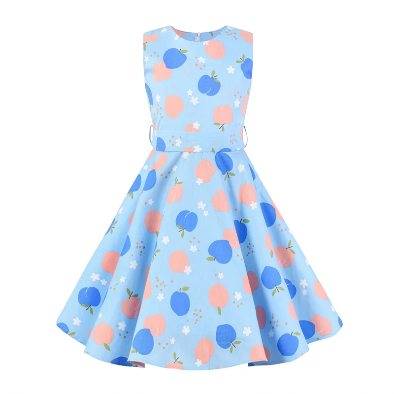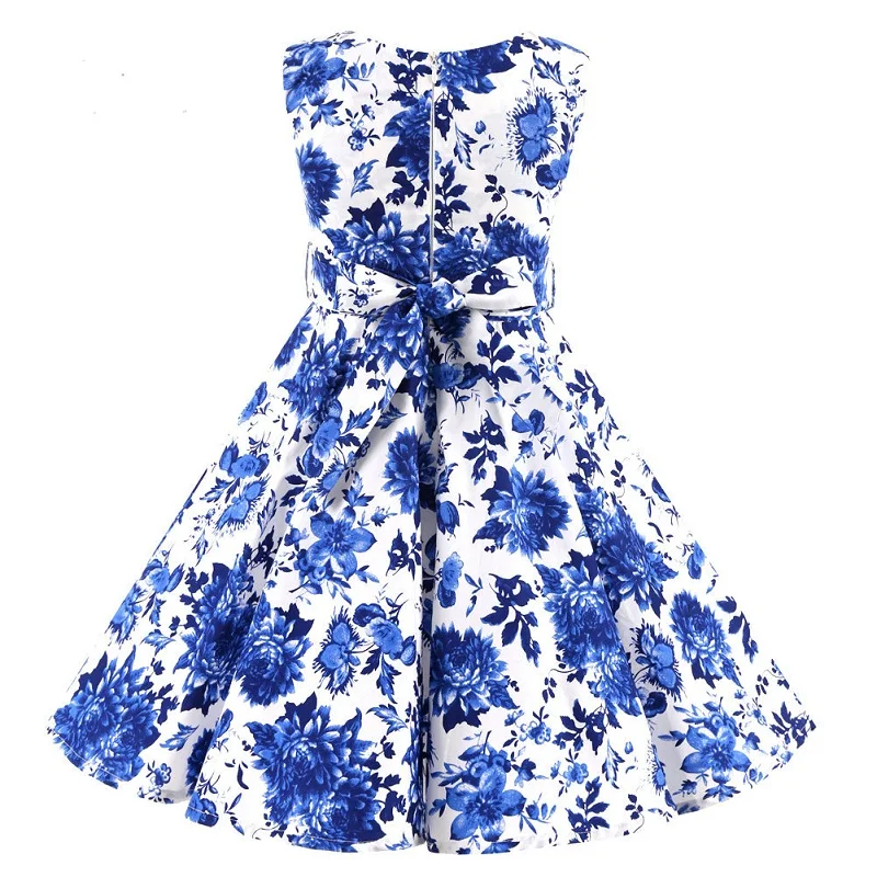 Polka Dot Vintage Kids Cotton Dress Flower Floral Midi Summer Dress Baby Girl