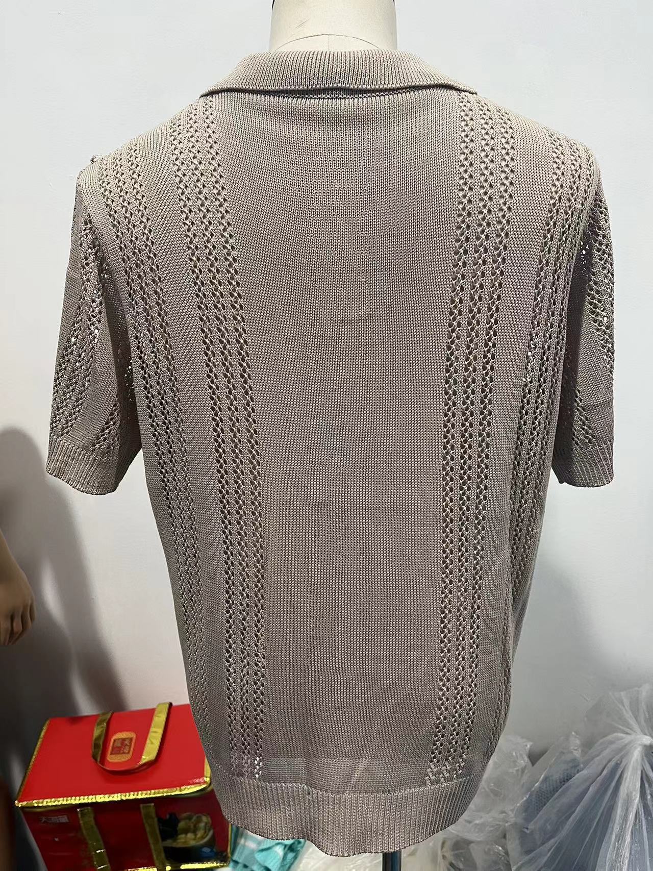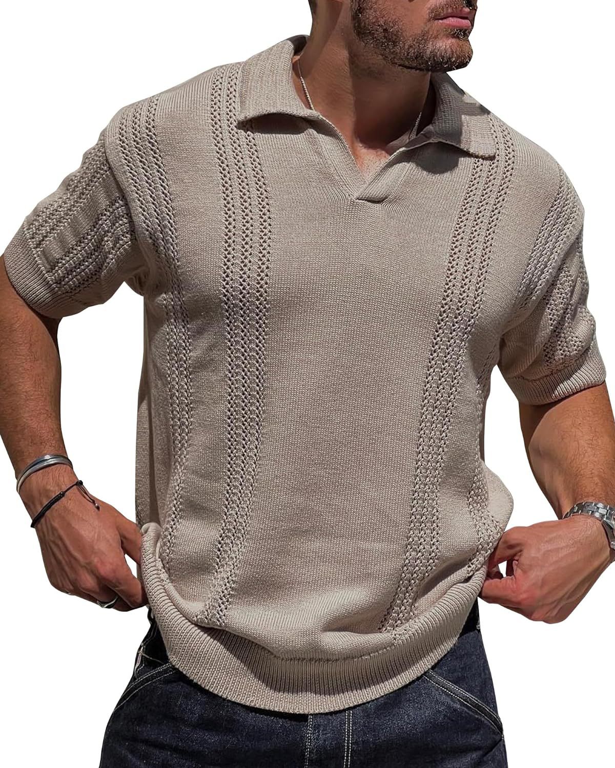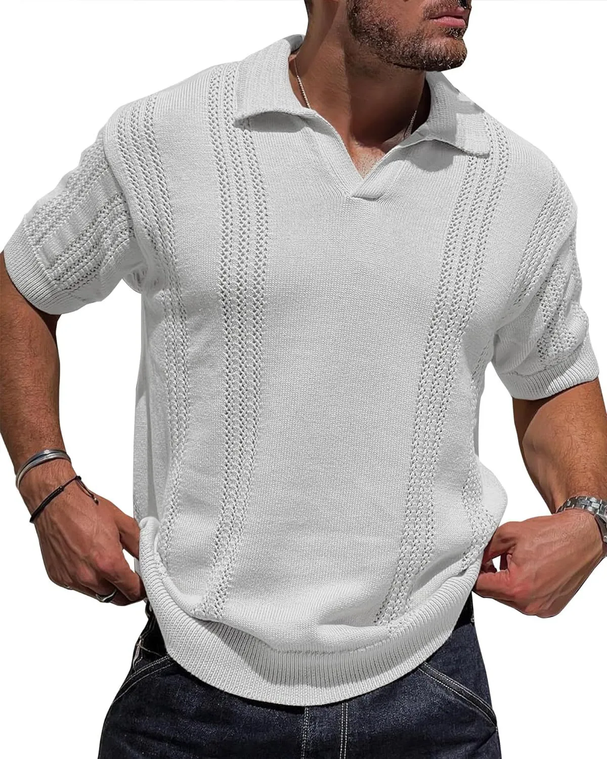 Polo de punto de manga corta con cuello en V calado para hombre, estilo europeo y americano