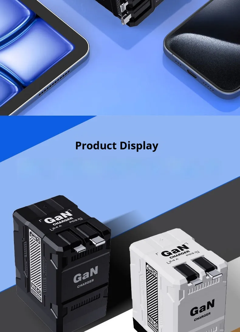 Popular F2 Gallium Nitride Fast Charge Charging Plug Double Flexible Wire