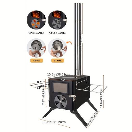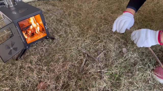 This manual camping stove features a sturdy black iron construction that resists high heat and outdoor conditions. It works with traditional fuels, such as firewood or gas, and does not require electricity or ignition. Simply light the stove and use it for cooking, heating water, or making coffee during your camping trip.