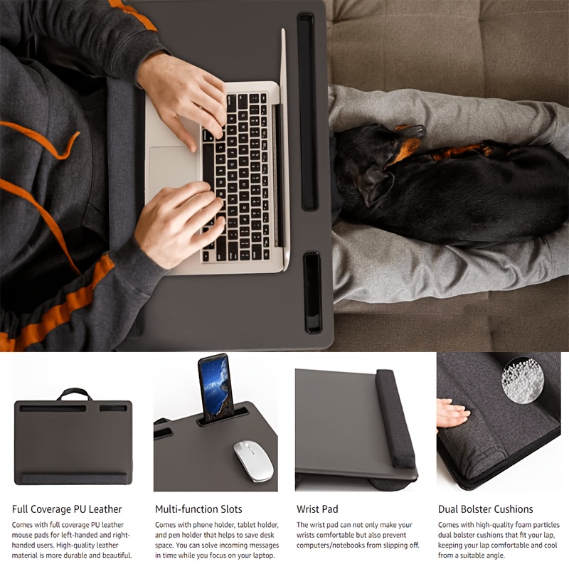 - Anti-Slip Faux Leather Surface: The premium faux leather surface ensures stability and prevents your laptop from slipping, providing a secure and smooth work surface.