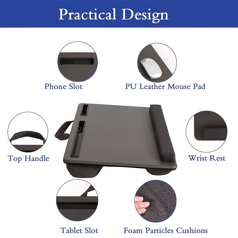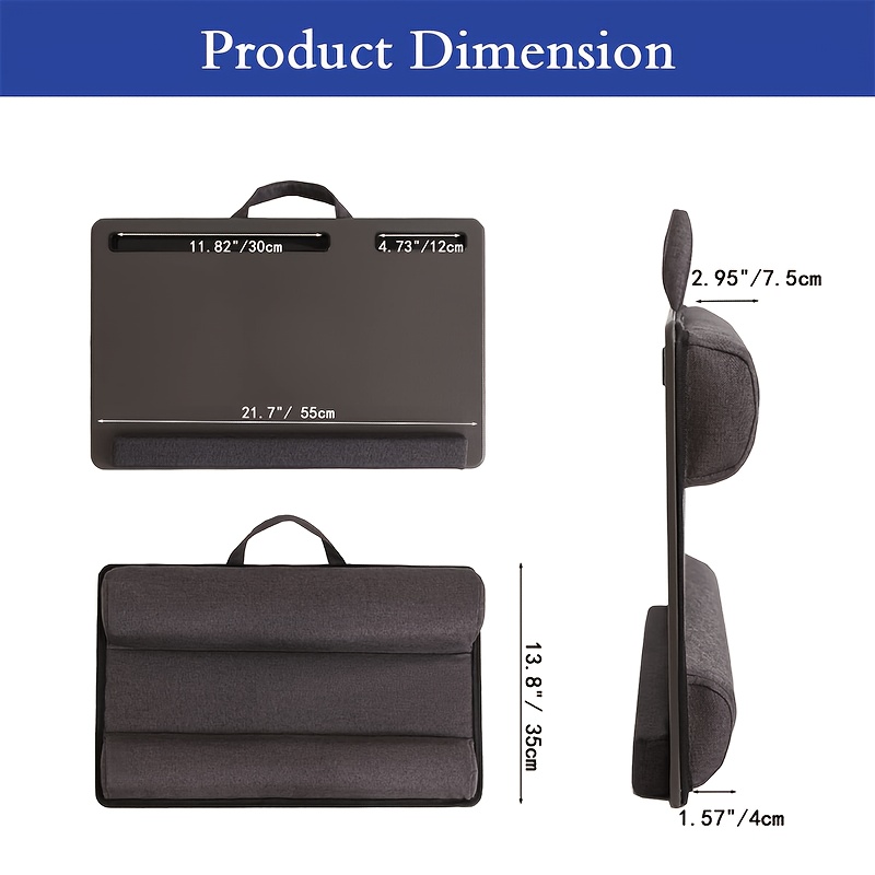 The Portable Laptop Desk is a versatile and comfortable solution for those who work or browse from the comfort of their bed, couch, or home office. With its ergonomic design, the desk elevates your laptop to a comfortable working angle while providing ample space for your mouse and tablet or phone. The anti-slip faux leather surface adds a premium touch, while the foam cushion wrist rest ensures a comfortable typing experience.