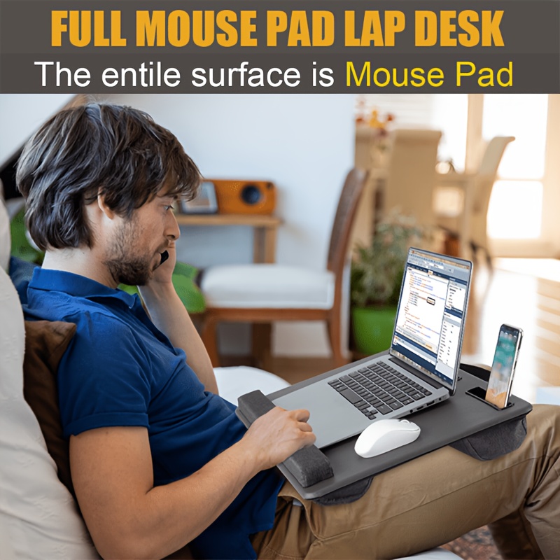 The Portable Laptop Desk is perfect for anyone who needs a comfortable, ergonomic, and multifunctional workstation at home. Its versatile features, such as the full mouse pad, tablet holder, wrist rest, and lightweight design, make it an essential tool for maximizing productivity and comfort in any setting.