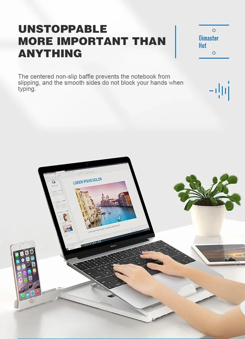 Lightweight and foldable, it is easy to carry and store, making it perfect for travel or flexible work setups. It can be used on desks, tables, or other flat surfaces, providing stable support for your device.