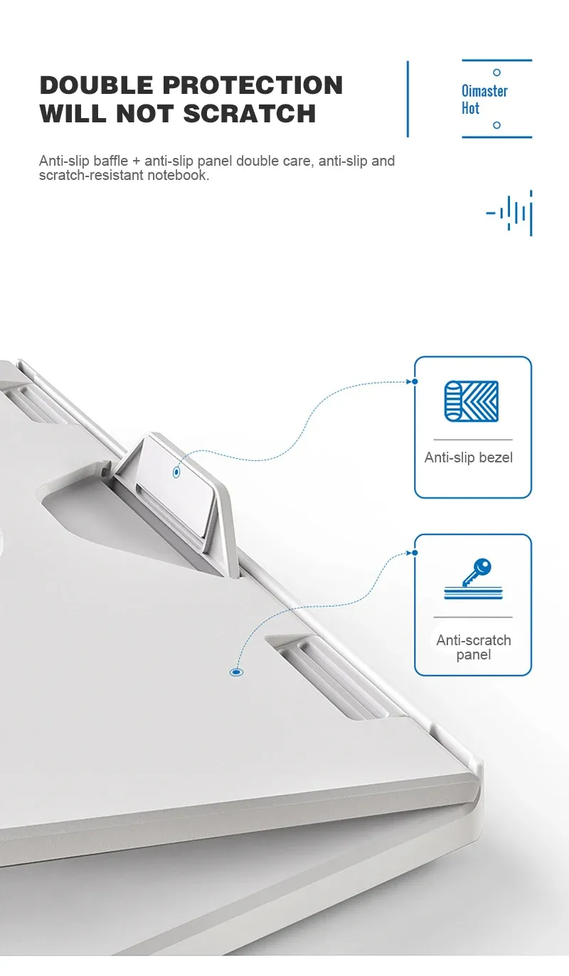 Laptop Riser with Heat-Vent: This Macbook stand has a big hole for ventilation, and is designed with a cooling slot, insert a cooling silicone pad into the corresponding cooling slot, adjust it to the appropriate position according to the needs of its own notebook and tablet. which is to cool down your laptop by providing more airflow than if it were lying flat on the table.