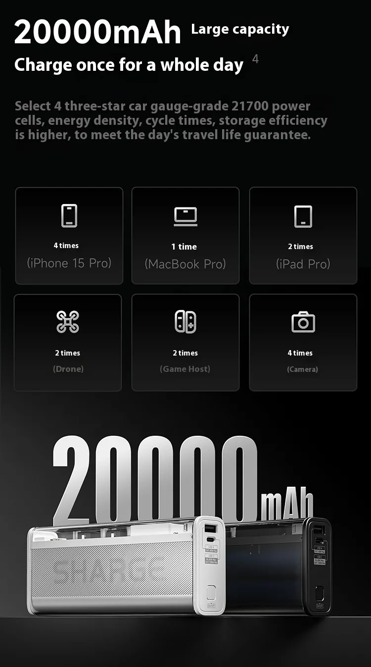 Equipped with a large‑capacity lithium battery that stores significant energy, enabling the powering of multiple devices or appliances over