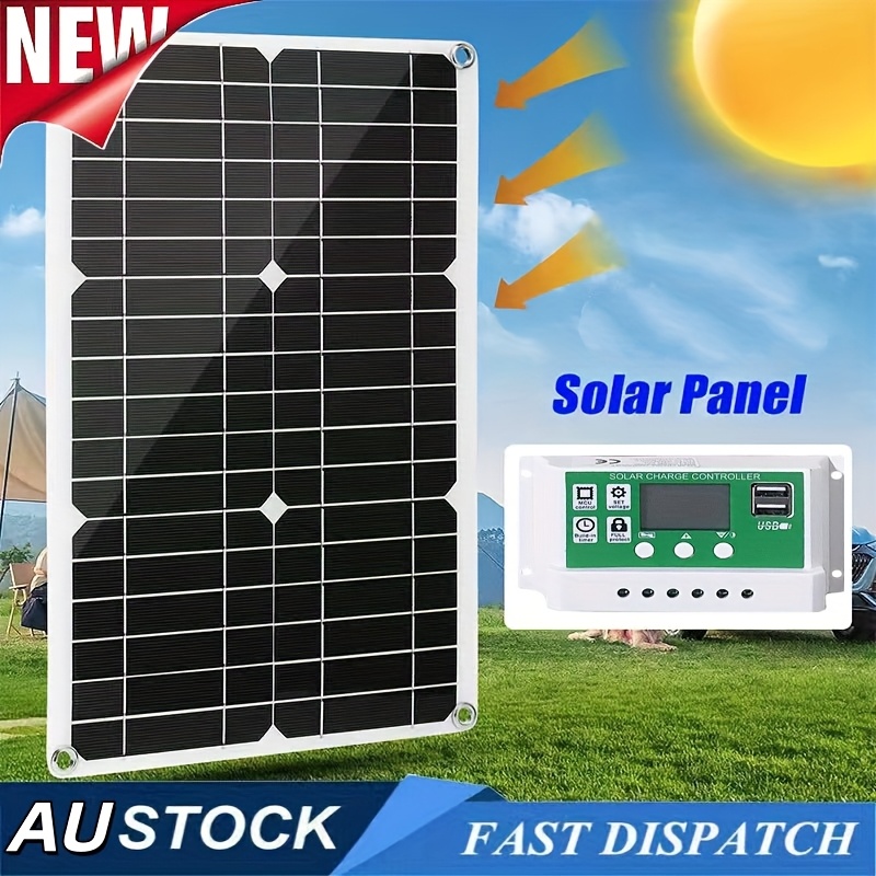 The Portable Solar Panel provides a reliable and eco-friendly power solution for both home and outdoor use. Equipped with a 100-amp solar charging controller, extension cord with battery clips, and a cable with ten wires, this solar panel ensures efficient energy storage and provides dual USB output ports for convenient device charging.