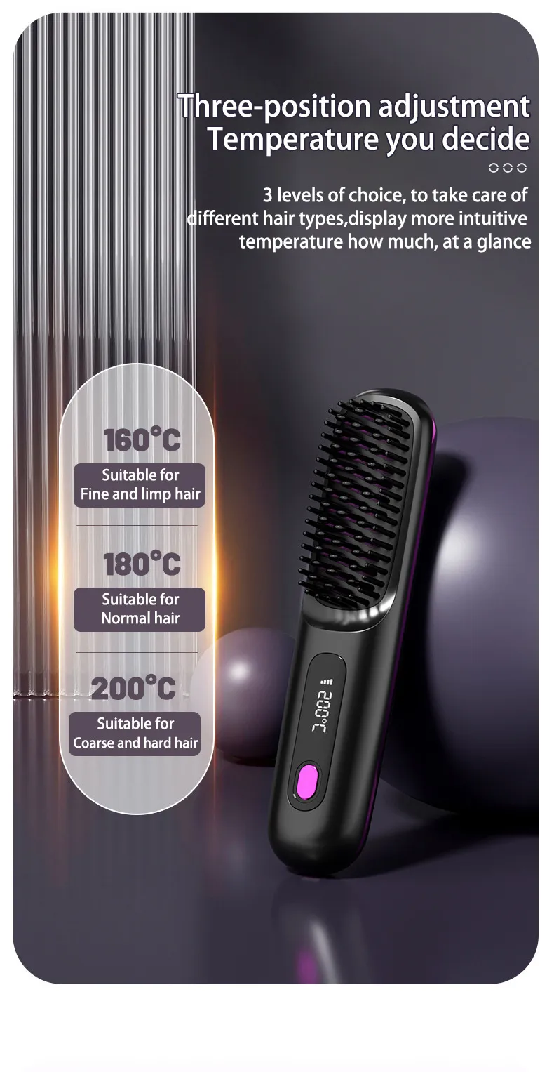Effortless and Efficient Styling: Our wireless hair straightener brush features advanced heating technology that quickly reaches your desired temperature.