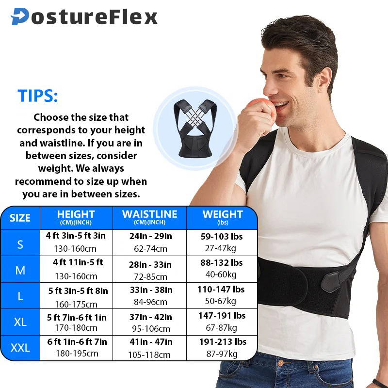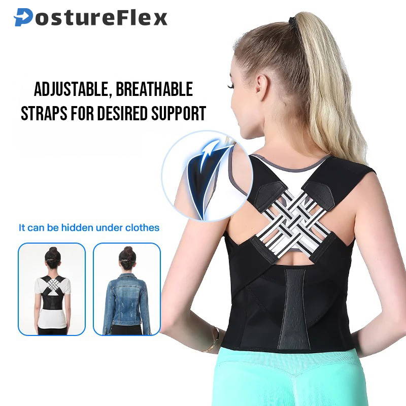 Mejore su postura y alivie las molestias de espalda con PostureFlex, un corrector de postura innovador y ergonómico diseñado para