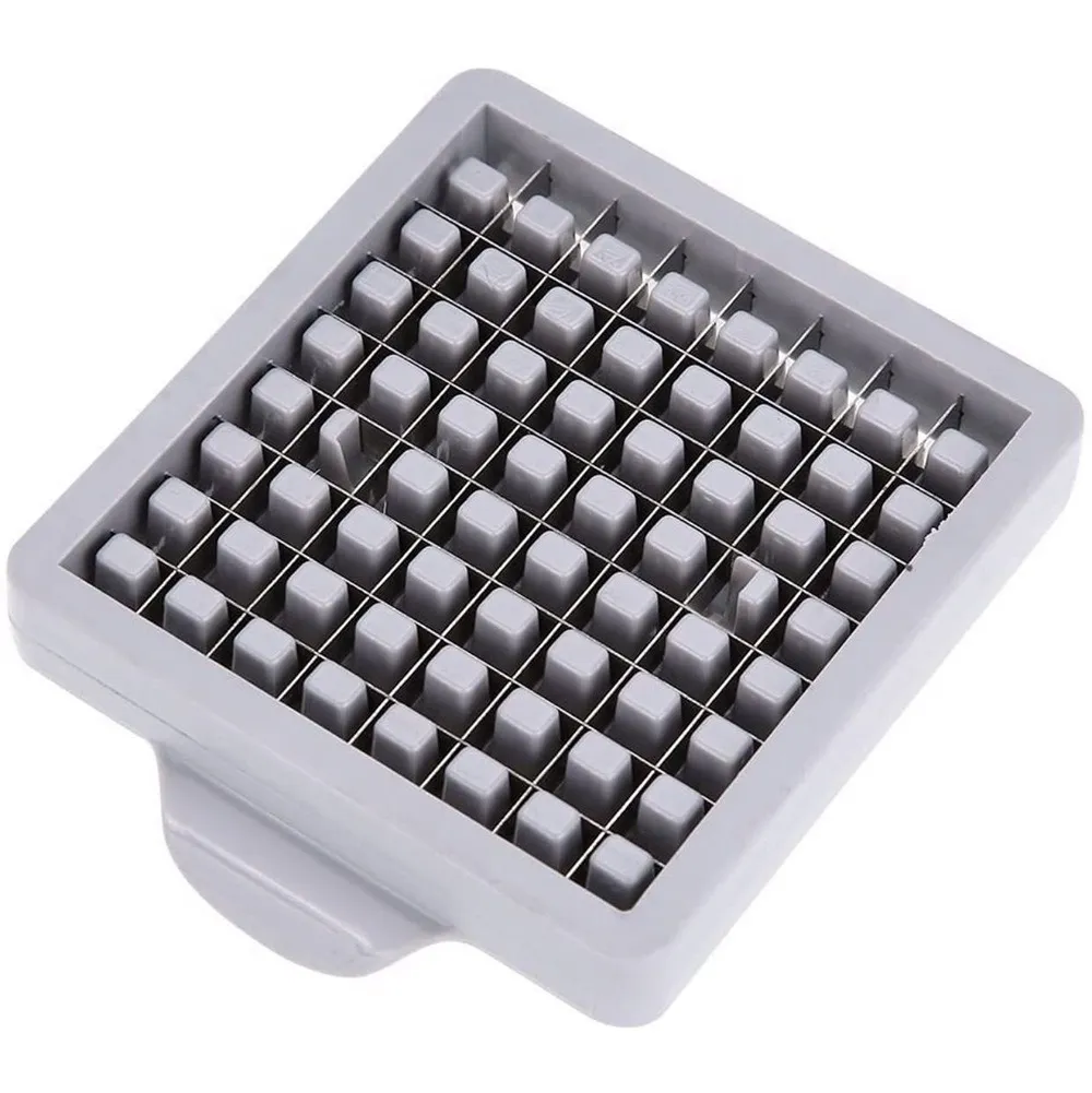 At its core, the cutter features a grid of sharp, evenly spaced blades that slice vegetables into consistent shapes. When a potato is pressed through the cutting grid, the result is uniform slices ideal for homemade chips, French fries, pommes frites, or even vegetables such as zucchini and sweet potato. The sharp blades reduce slicing effort while ensuring even thickness — a key factor for uniform cooking and crisp texture.