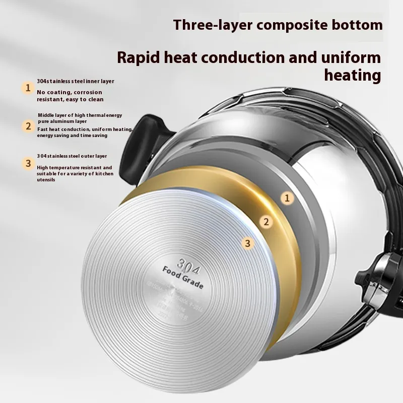 Integrated Safety Systems: Pressure-regulated valves, secure locking lid, and automatic pressure release ensure safe operation.