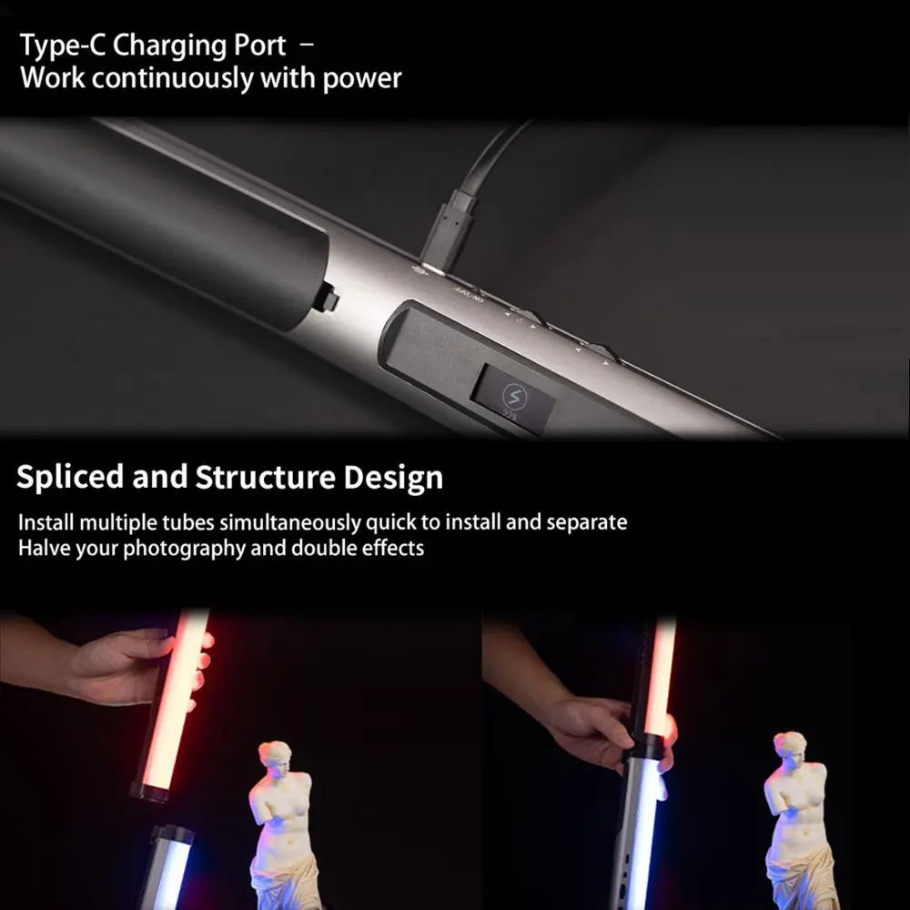lights. Also Supports unlimited splicing. There are 1/4 screws on the side, which can be assembled on a camera tripod with accessories.