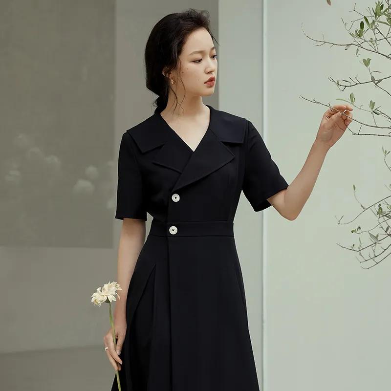 For an elegant, professional look with a touch of classic sophistication, the Professional Suit Dress Female Summer New Hepburn Style Temperament Was Thin Long Skirt is the ideal choice. With its flattering fit, breathable fabric, and versatile design, this dress is a must-have addition to your wardrobe.