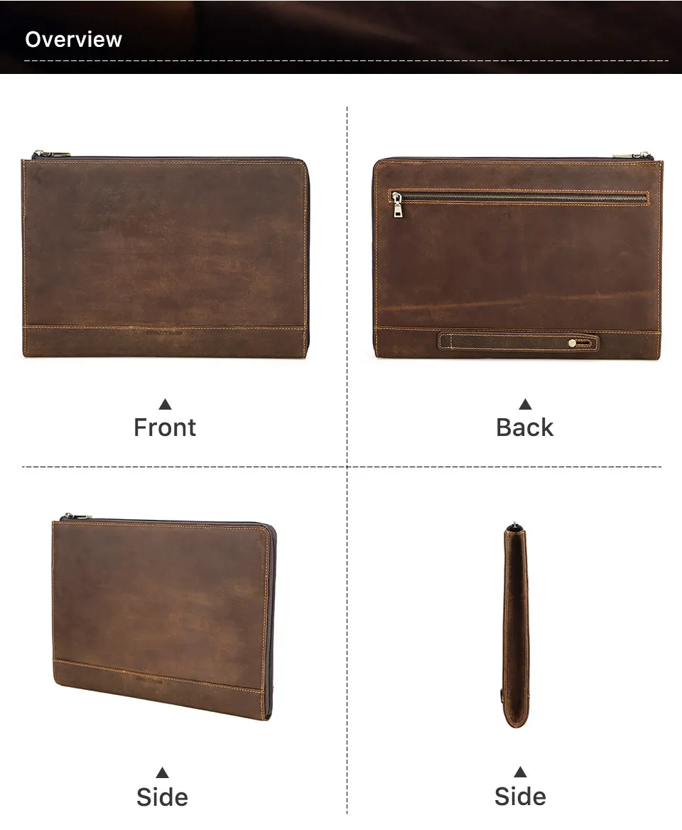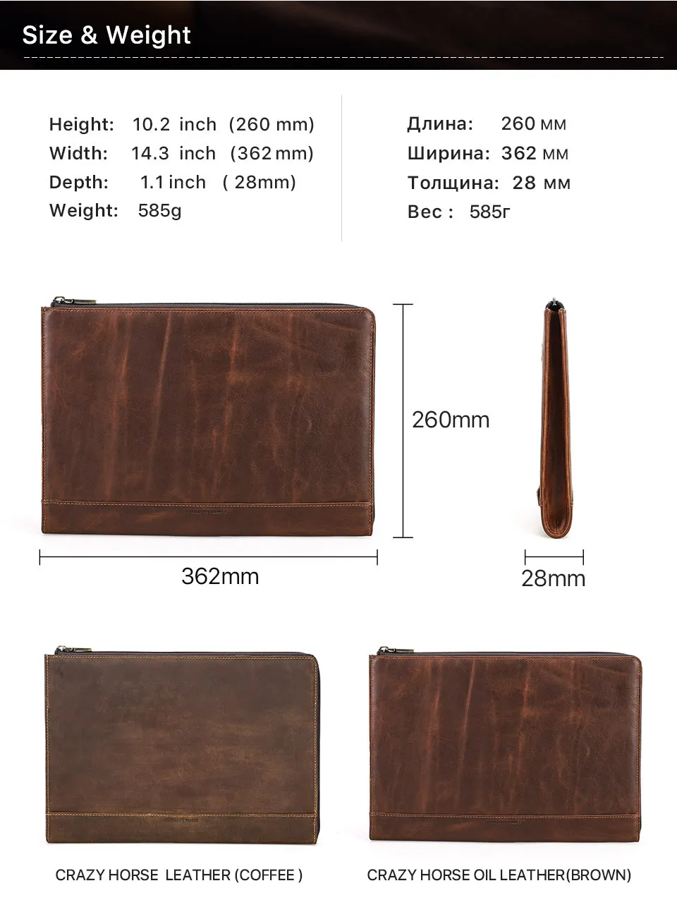 Protective Case Crazy Horse Oil Leather Zipper Laptop Bag – Premium Protection with Timeless Style