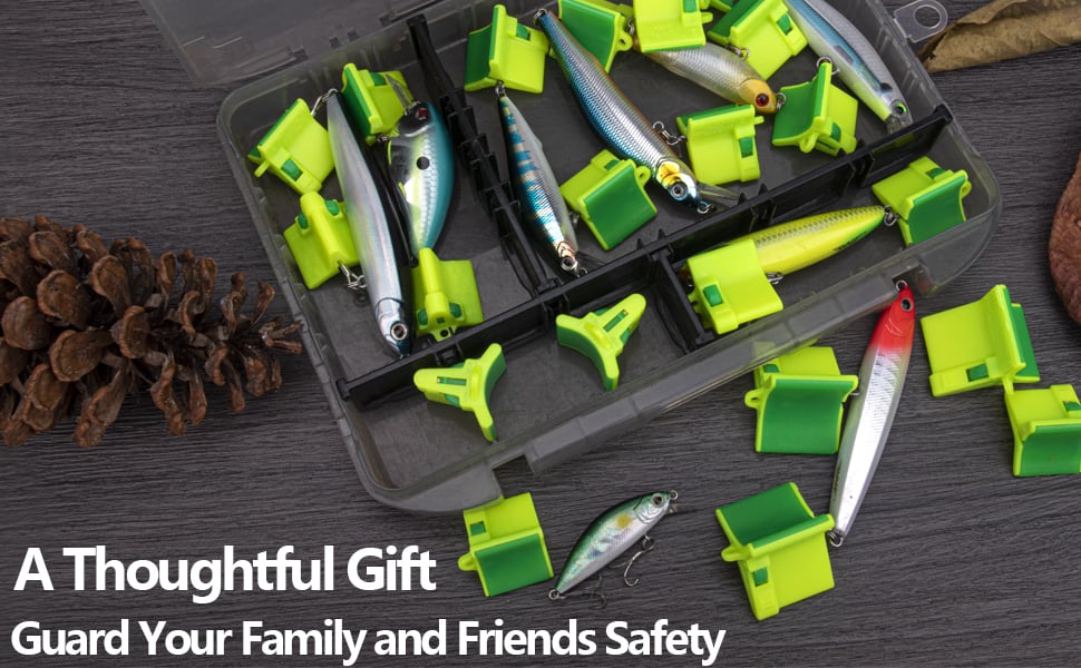 UN REGALO ELEGANTE: Los bonetes para anzuelos triples serán un detalle íntimo para los pescadores. Para proteger a su familia y amigos de ser pinchados por el anzuelo, reduzca el tiempo necesario para organizar la caja de aparejos de pesca debido a que el anzuelo se enreda. Las fundas para anzuelos triples son una excelente opción.