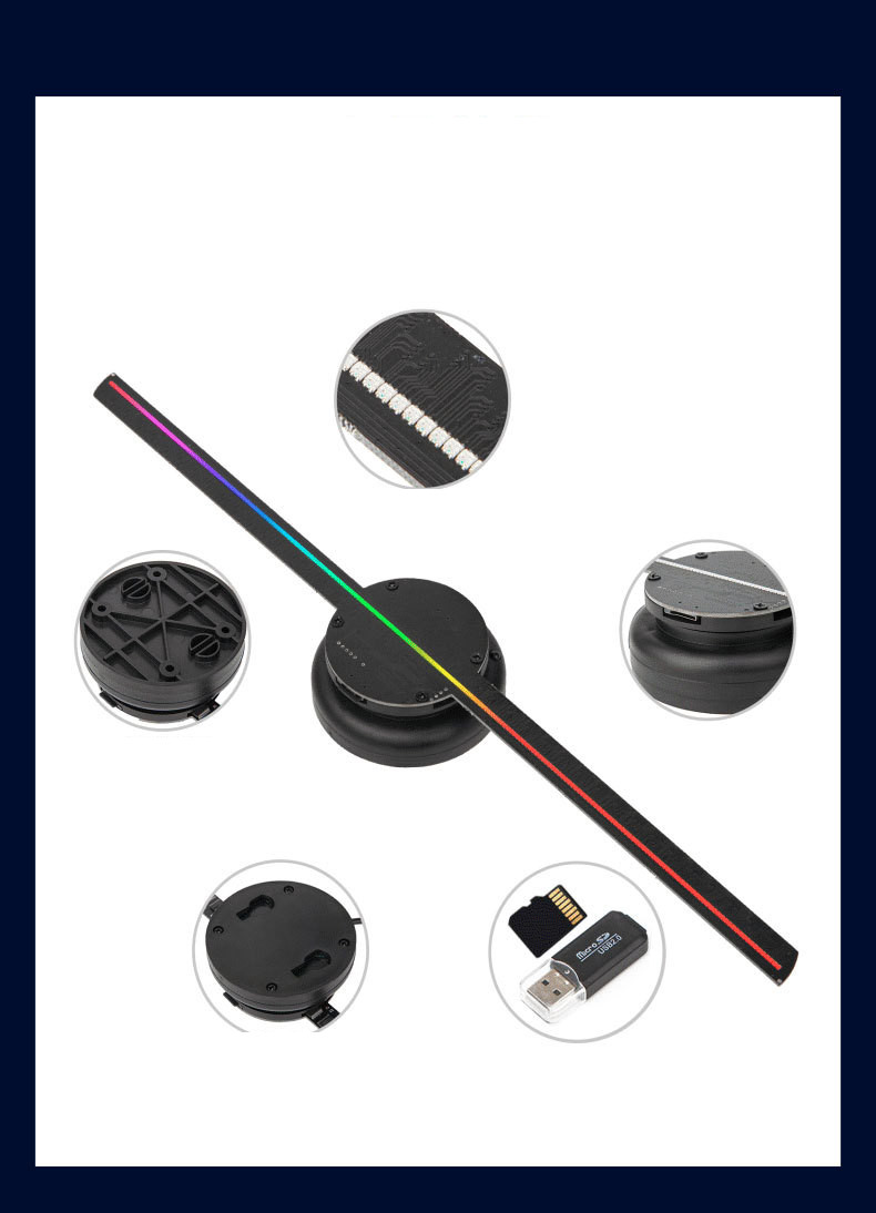 Transforma tu espacio en una obra maestra visual con el Ventilador Proyector Holográfico LED 3D, una herramienta de decoración única que da vida a imágenes, videos y hologramas 3D. Este innovador proyector LED combina gráficos de alta resolución con una llamativa pantalla en forma de ventilador para crear visuales flotantes que parecen suspendidas en el aire. Ideal para decoraciones navideñas, eventos y uso doméstico, este proyector ofrece una forma atractiva de mostrar cualquier diseño, desde mensajes personales hasta intrincadas animaciones 3D.