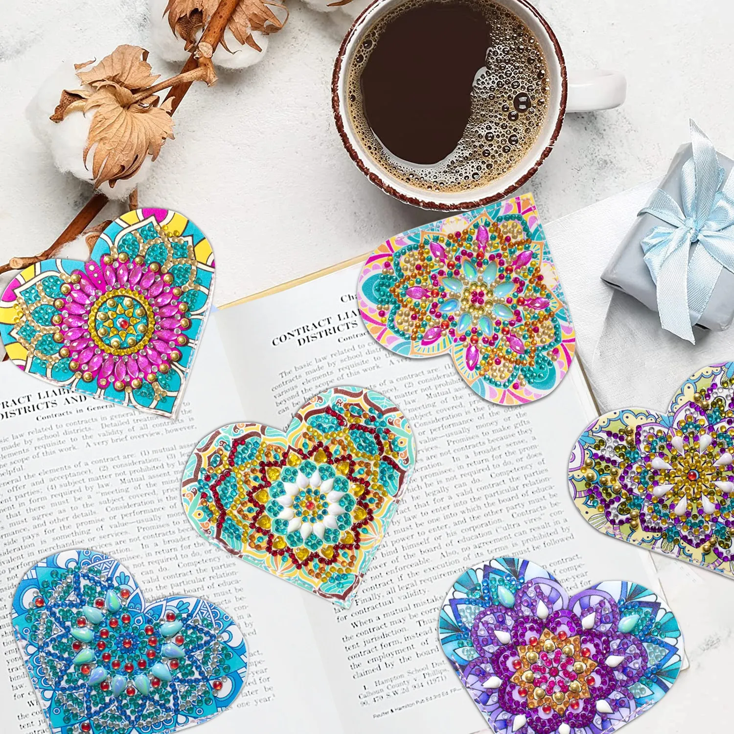 PU Leather Handmade Stick-on Crystals Flower Cornerite Bookmark