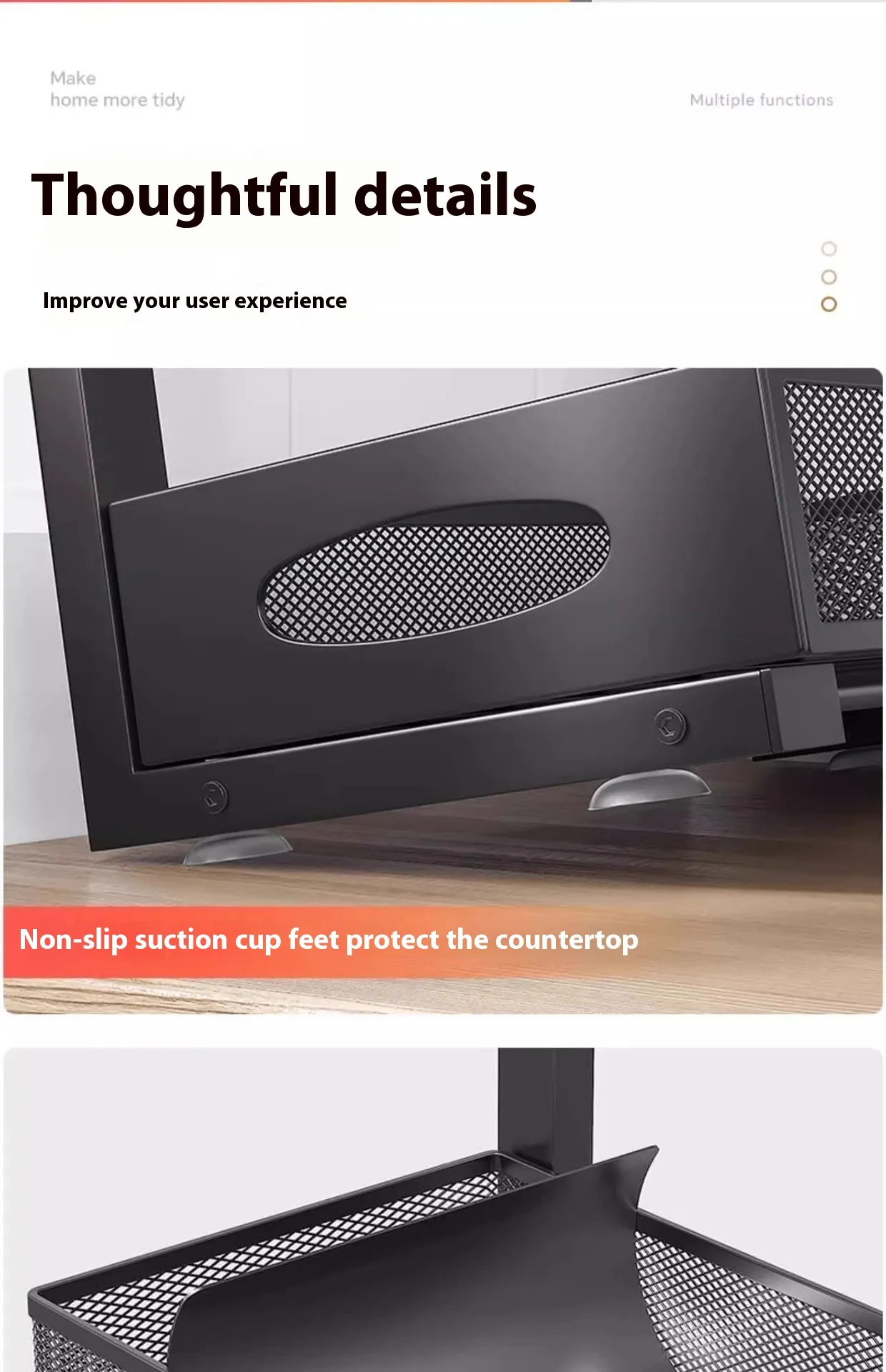The pull-out double-layer drawer maximizes your kitchen’s storage capacity, making it ideal for kitchens with limited cabinet space or those looking to optimize storage efficiency.