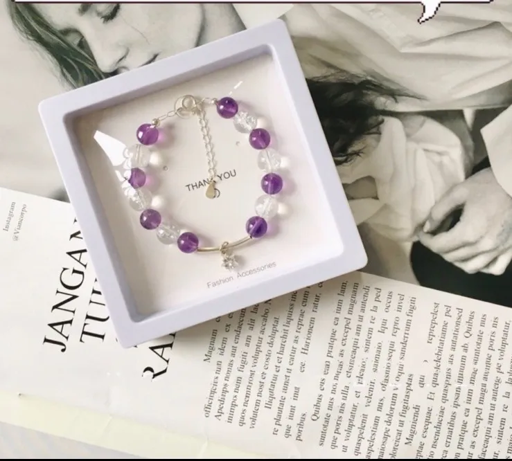 Pulsera de amatista natural y lavanda para mujer, gran oferta