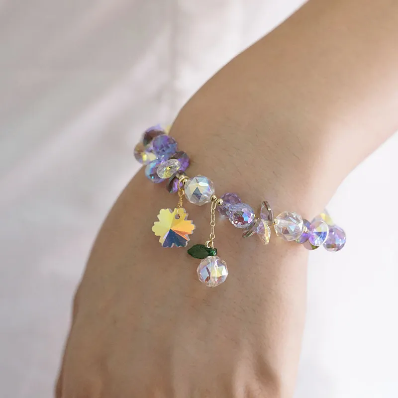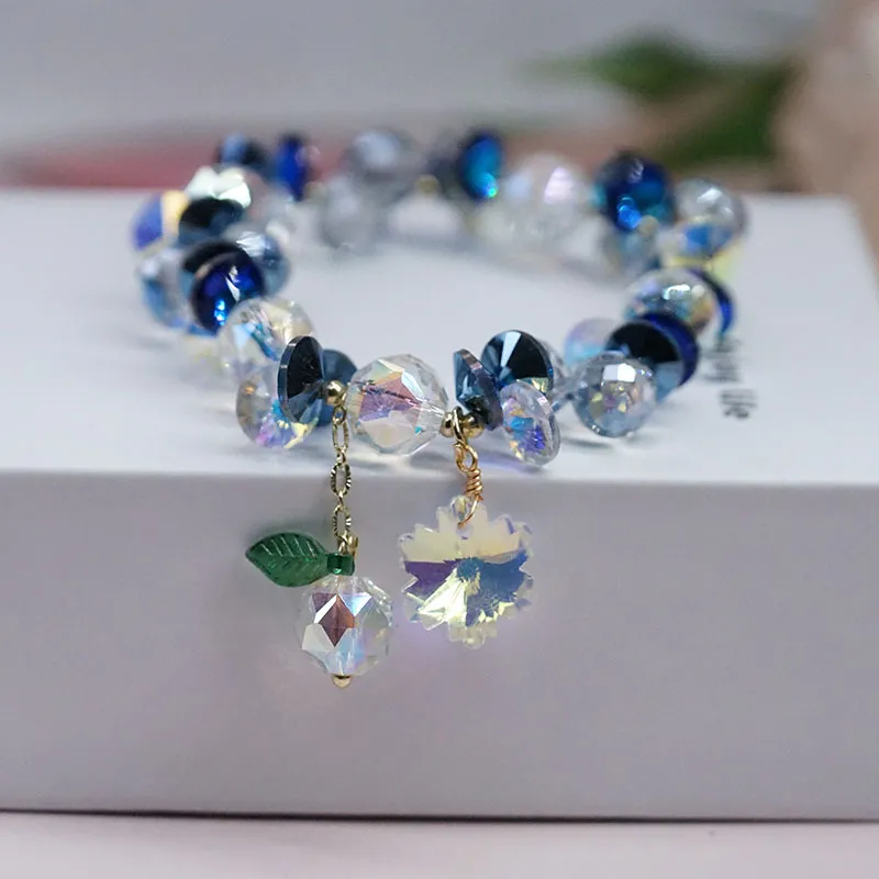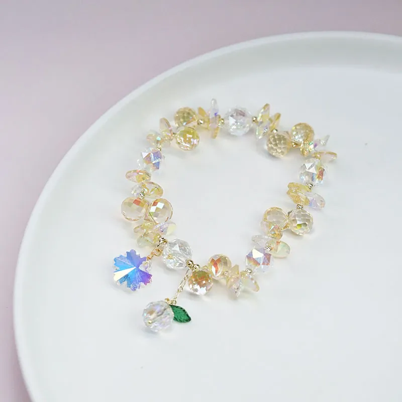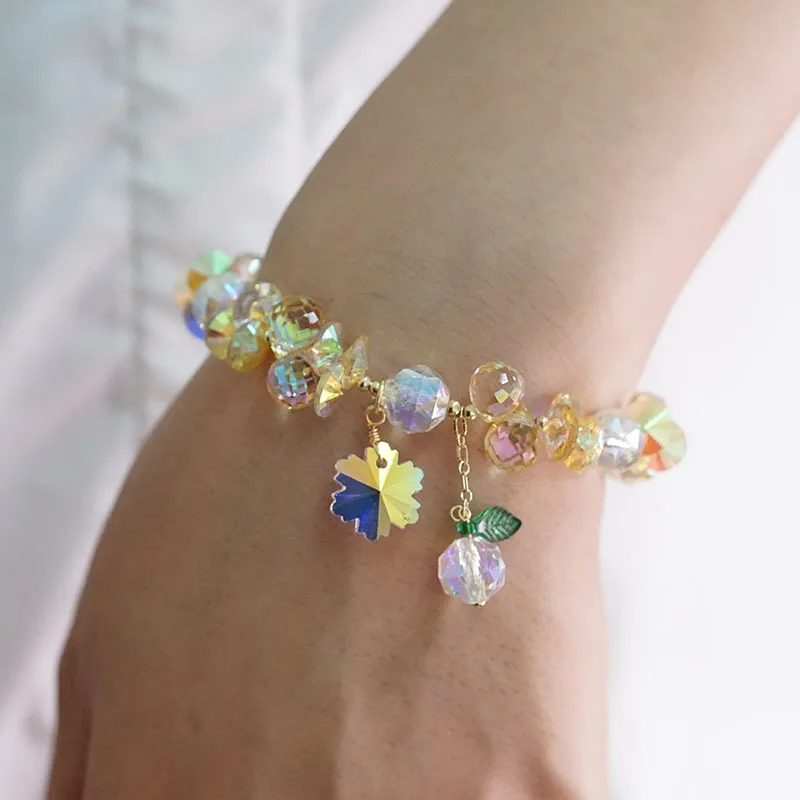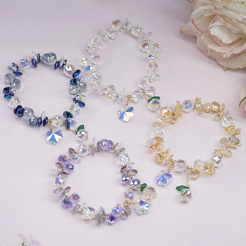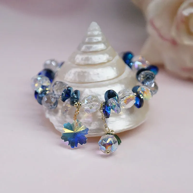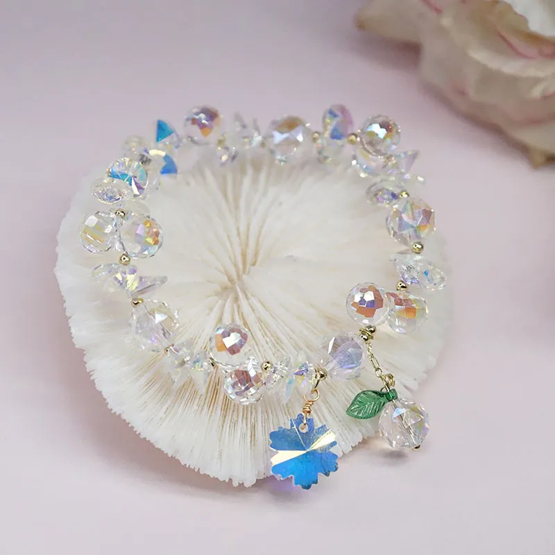 Pulsera de cristal superbrillante con copos de nieve coloridos, estilo hada Mori