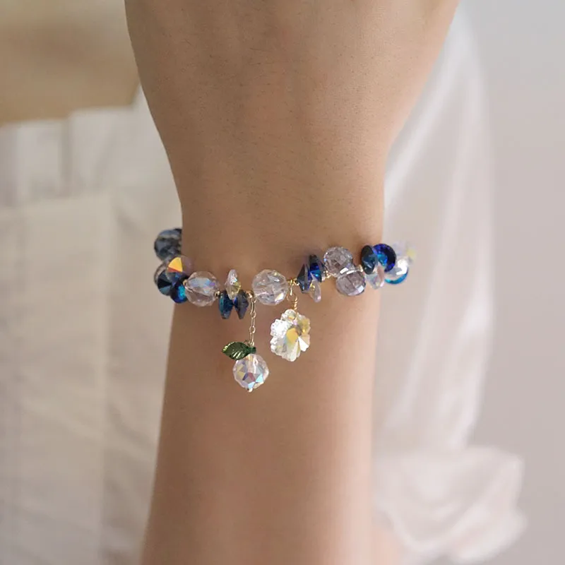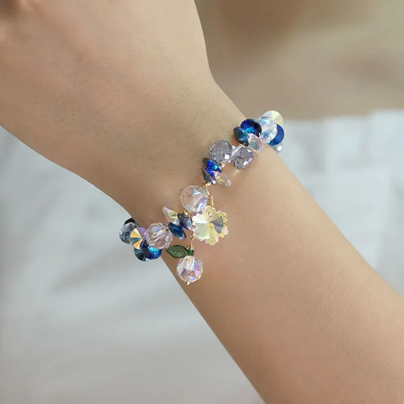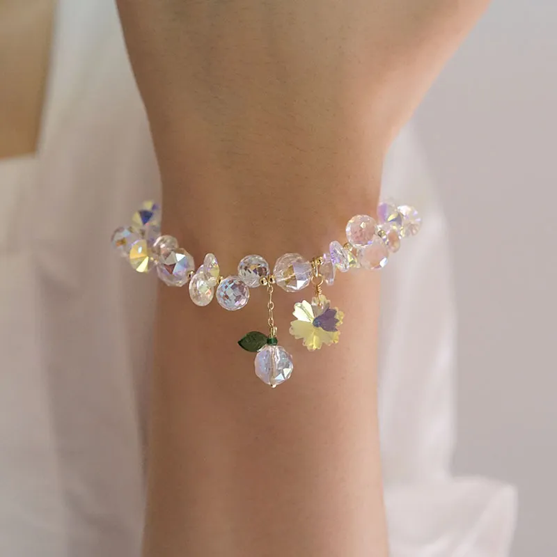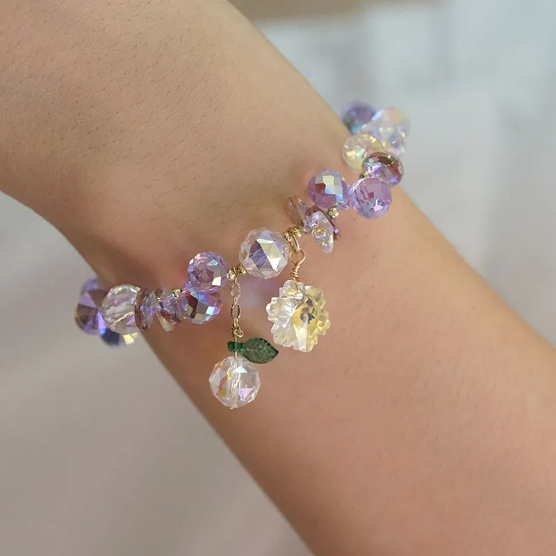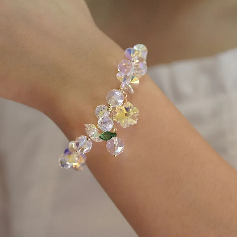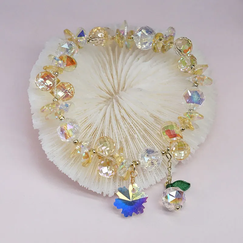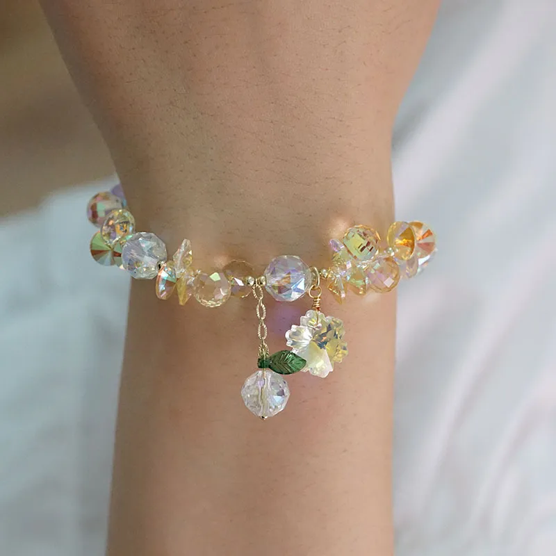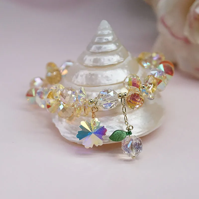 Pulsera de cristal superbrillante con copos de nieve coloridos, estilo hada Mori