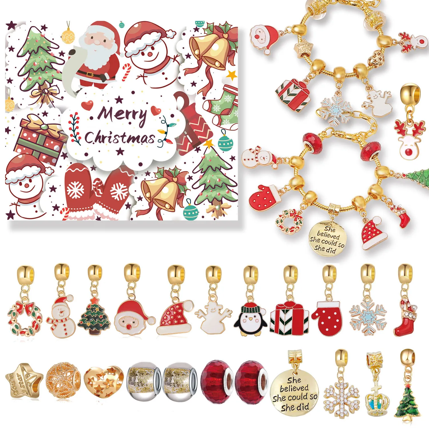 Juego de Regalo con Calendario Dorado de Cuenta Regresiva para Navidad: Pulsera de Cuentas DIY con Árbol de Navidad