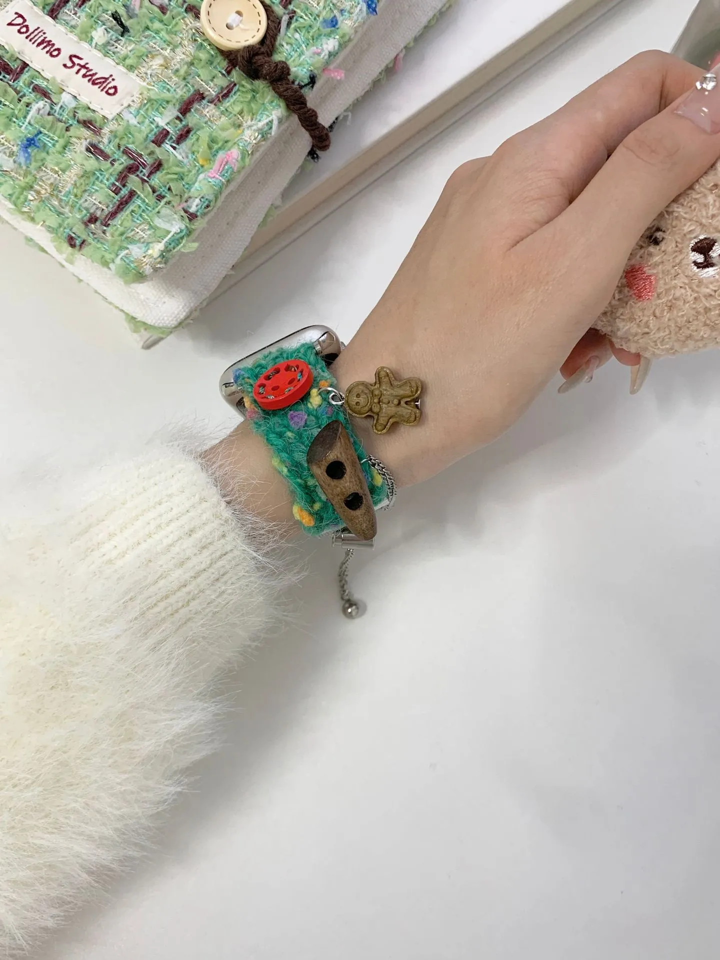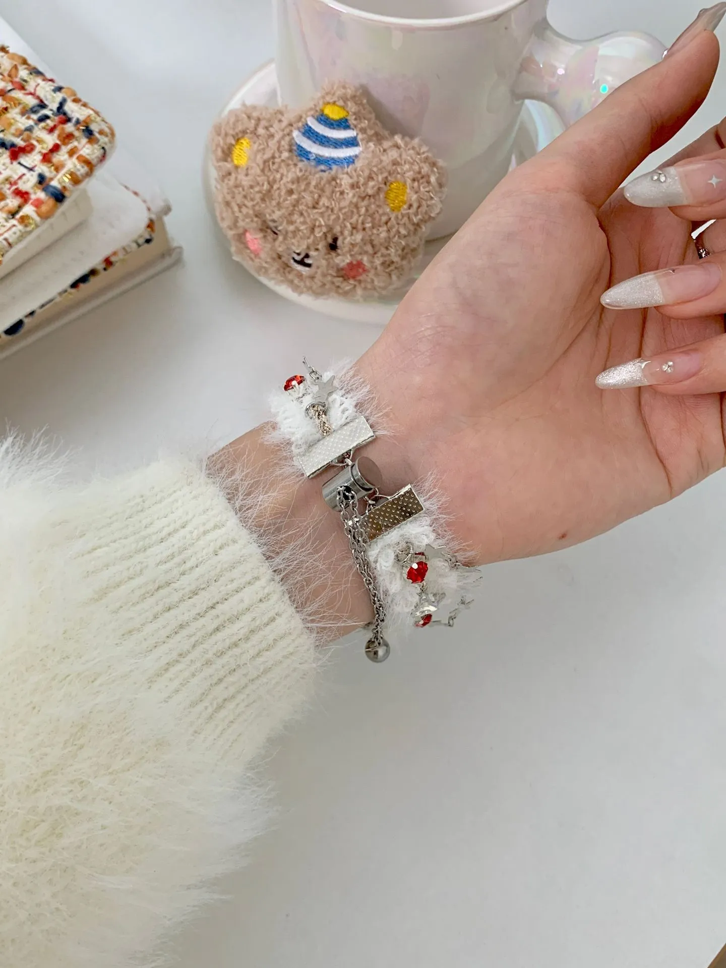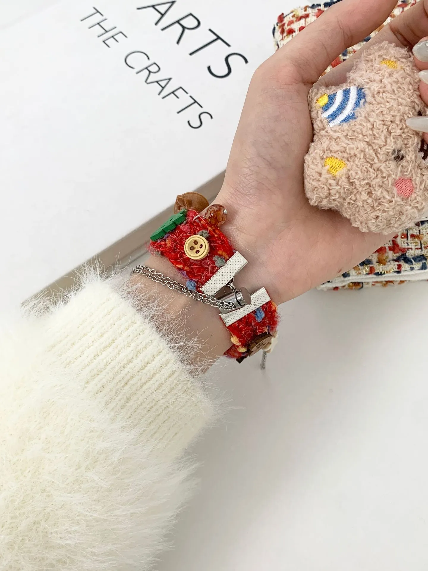 Elaborada con tela de felpa de alta calidad, la pulsera se siente suave al tacto, manteniéndote cómoda durante los meses más fríos.