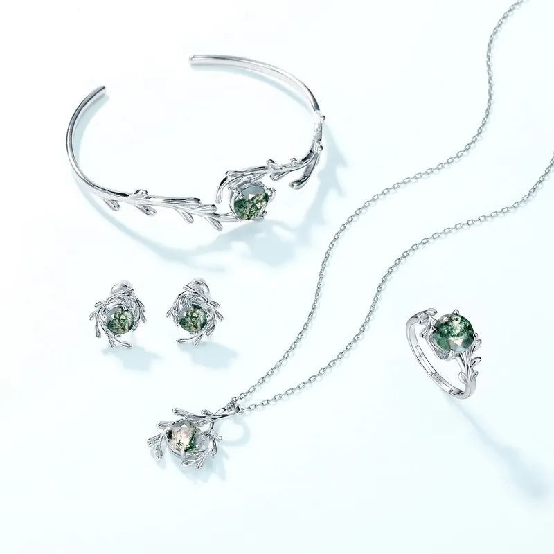 - Diseño inspirado en la naturaleza: La piedra de musgo verde y el ágata de planta acuática no solo son visualmente impresionantes, sino que también tienen un profundo simbolismo de crecimiento, renovación y armonía con la naturaleza.