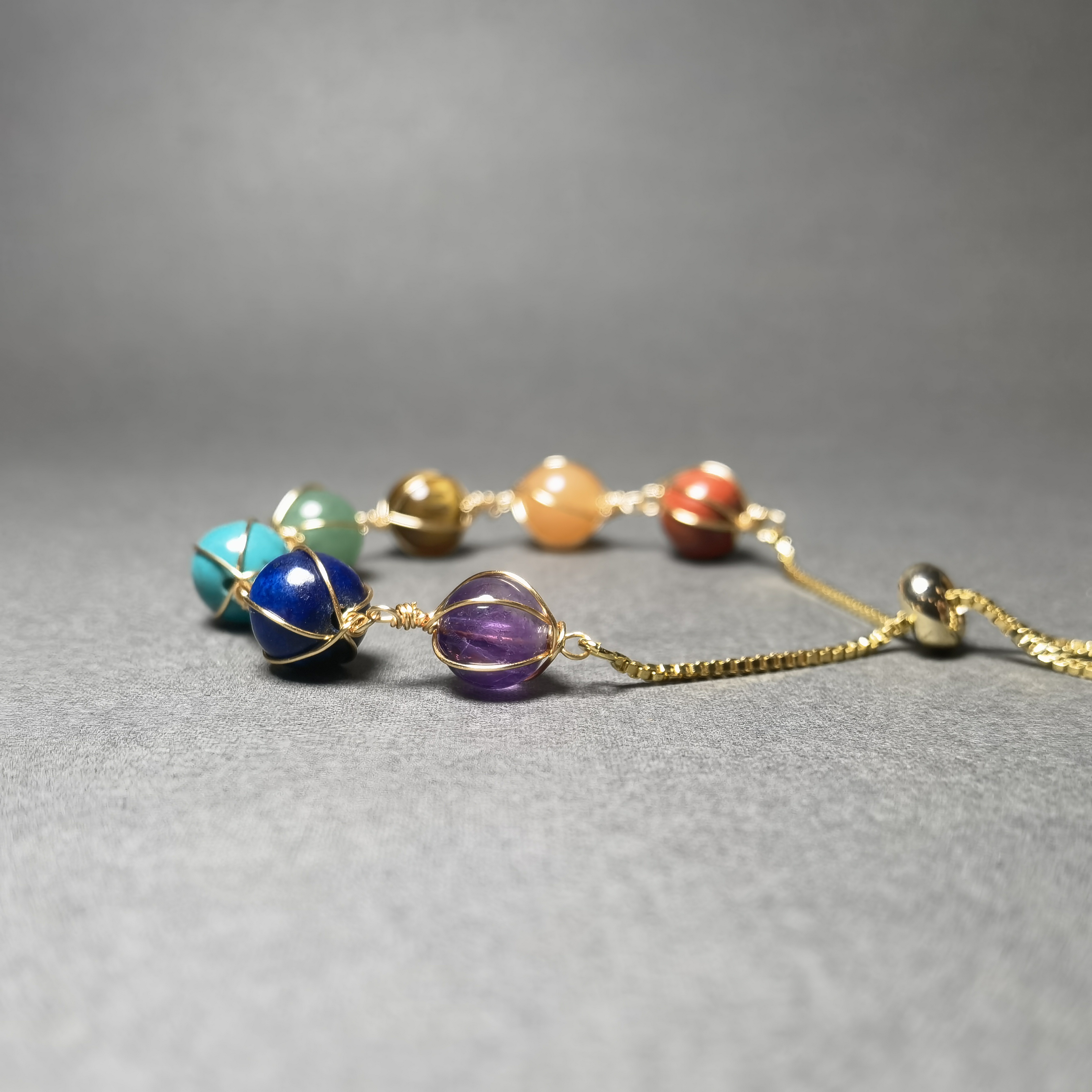 Beneficios de los cristales: Cada cristal de la pulsera corresponde a un chakra específico, promoviendo el equilibrio, la sanación y la energía positiva. Úsala durante la meditación, el yoga o a lo largo del día para mantener una sensación de armonía y bienestar.