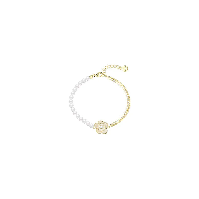 Pulsera ligera de lujo con perlas y camelia para mujer