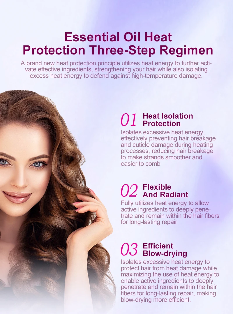 Isolates excessive heat energy, effectively preventing hair breakage and cuticle damage during heating processes, reducing hair breakage to make strands smoother and easier to comb.