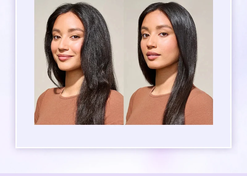 Real human hair, under the same conditions, hair before and after, subjected to 100 presses with a 470°F flat iron.