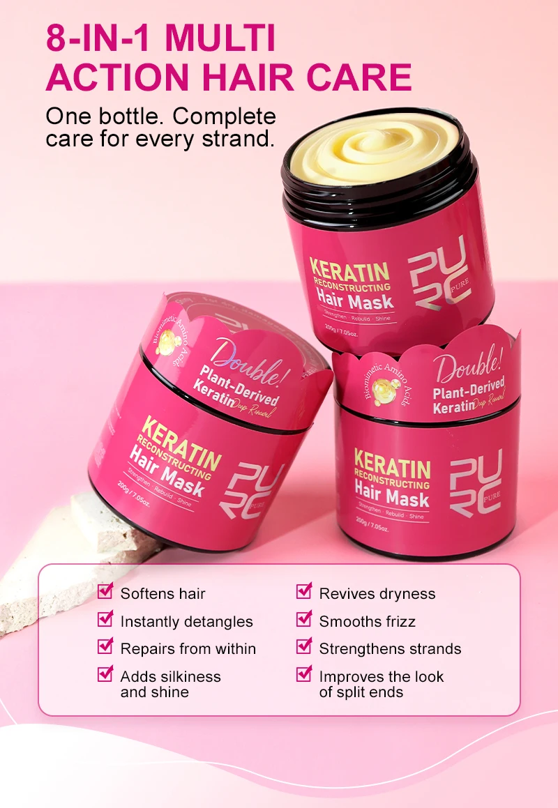 The PURC Double Keratin Hair Mask is a luxurious hair treatment designed to provide intensive care for damaged,