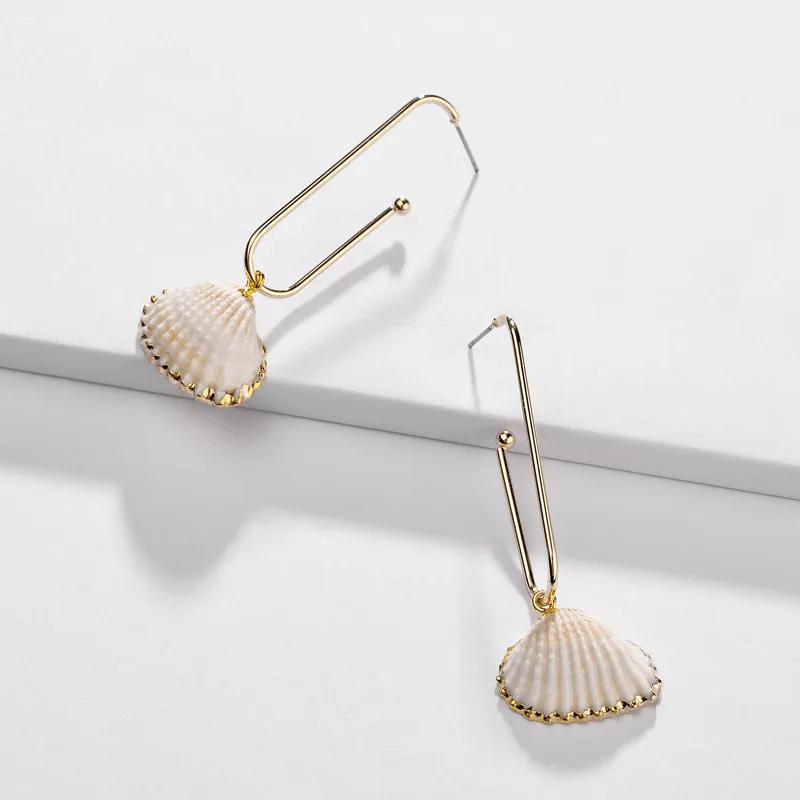 Qingdao Europe and the United States big jewelry earrings natural shell gold-plated side ear hook female earrings foreign trade new earrings