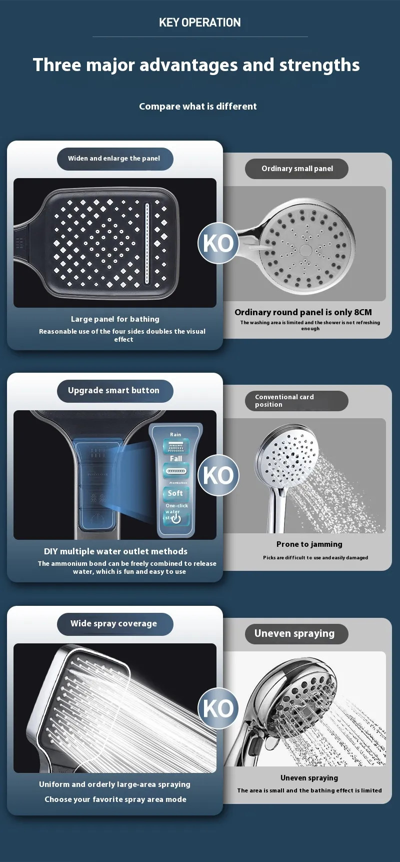 When selecting a shower head that enhances comfort, aesthetics, and performance, this rain shower head stands out for its combination of innovative design, durable build quality, and user‑friendly features. Unlike conventional shower heads that deliver narrow, intense streams, this model offers a soft, immersive rainfall experience that feels gentle on the skin while still powerful enough to rinse effectively. Its high‑quality materials and anti‑corrosion finish ensure that it remains pristine despite daily use, and the easy‑clean nozzles reduce the hassle of mineral buildup. Suitable for all ages and lifestyles, this rain shower head not only upgrades your bathroom’s functionality but also adds a premium flair that complements contemporary design schemes.
