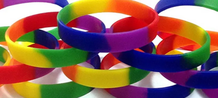 Rainbow silicone wristbands are made from soft, flexible silicone rubber and are typically imprinted or embossed with a bright, colourful rainbow design. These wristbands are widely used to represent LGBTQ+ pride, inclusivity, and support for various causes, while also serving as a fashion statement. The lightweight, durable material makes them perfect for everyday wear, allowing you to display your message or personality with ease.