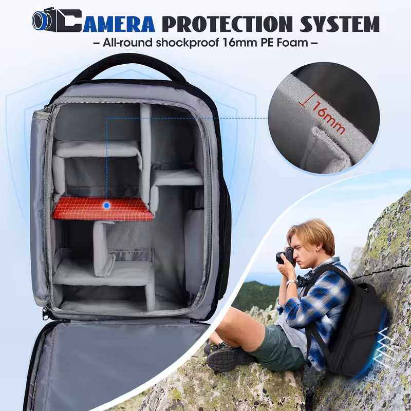 The RAINSMORE Camera Backpack stands out because it merges professional-grade protection with ease of use and everyday practicality. Many camera bags are either too small, uncomfortable, or lack smart organisation—but RAINSMORE solves all of these issues with a well-balanced design tailored specifically for photographers.