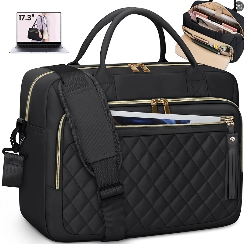 The RAINSMORE Women’s 43.94 cm Laptop Briefcase is a stylish, durable, and highly practical work bag designed for NZ women who need reliable protection for large laptops and daily essentials. Its quilted black polyester exterior, organised compartments, detachable strap, and professional design make it ideal for work commutes, business travel, study sessions, and everyday office life.